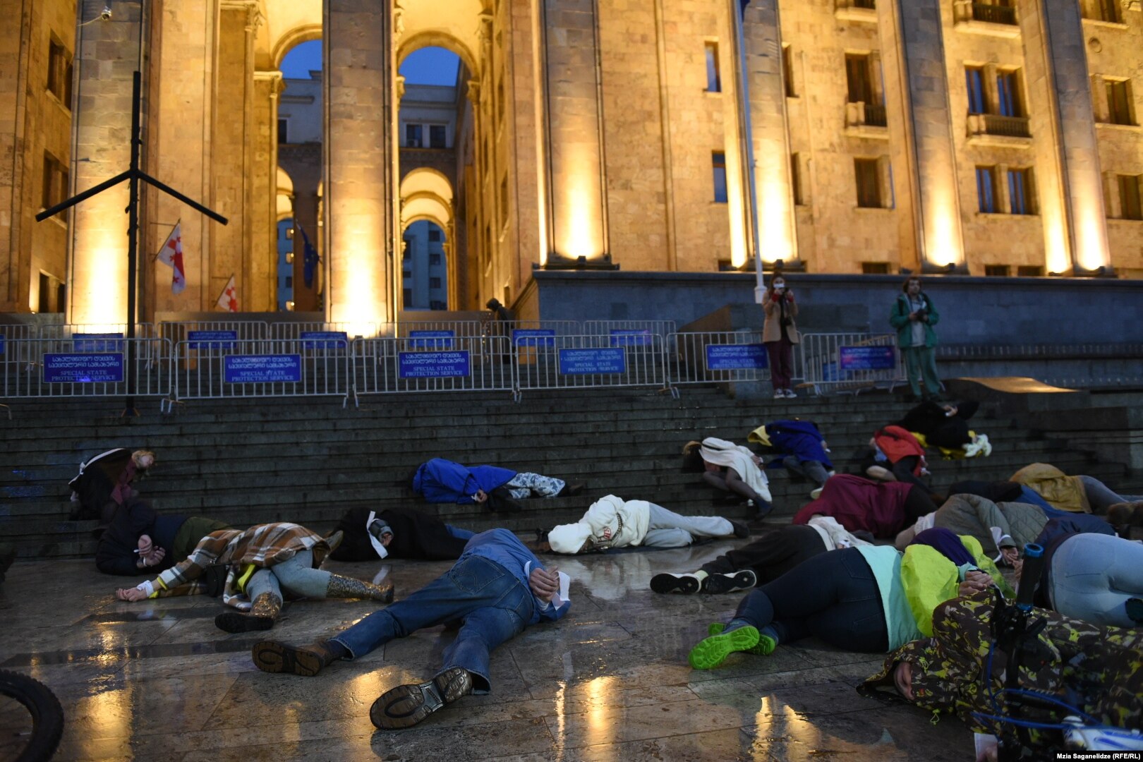 Во время акции у здания консульства находились около 15 полицейских с тремя служебными автомобилями и автозаком. Полицейские предупредили жителей, что акция незаконна и призвали их разойтись. Вместо этого участники акции легли на тротуар в память об убитых в Буче.