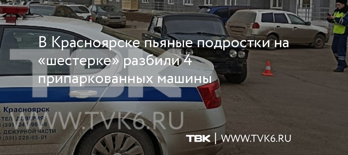 В Красноярске пьяные подростки на «шестерке» разбили 4 припаркованных машины