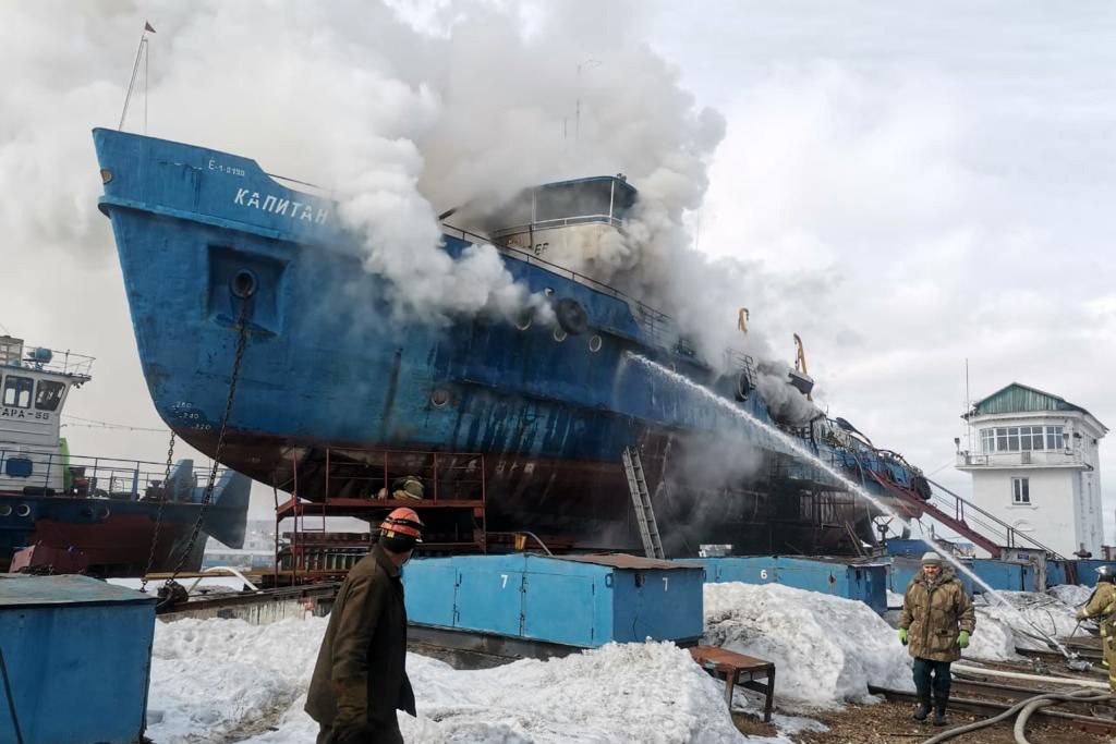 «12 апреля на ремонтно-экcплуатационной базе флота АО „Енисейское речное пароходство“ при производстве сварочных работ на теплоходе „Капитан Колыгаев“ допущено возгорание, — говорится в сообщении Западно-Сибирской транспортной прокуратуры. — По предварительным данным в результате происшедшего никто не пострадал».