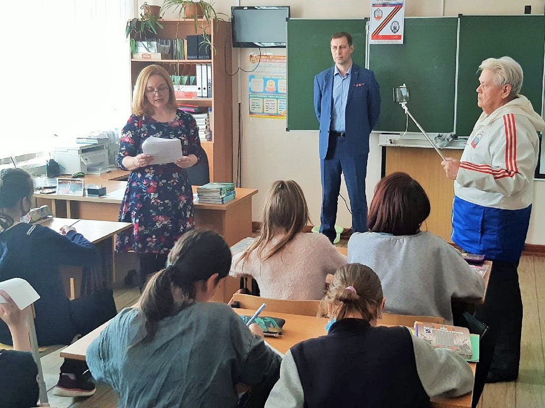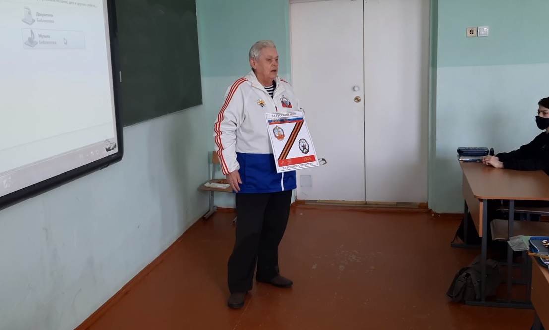 – Такие дела, которые творятся у нас в мире, такого никогда не было… Ввиду того, что руководство Украины еще в 2017 году готовило нападение для того, чтобы разбомбить Донбасс, а потом уже напасть на Россию! – запинаясь, выступает перед школьниками пожилой человек.
