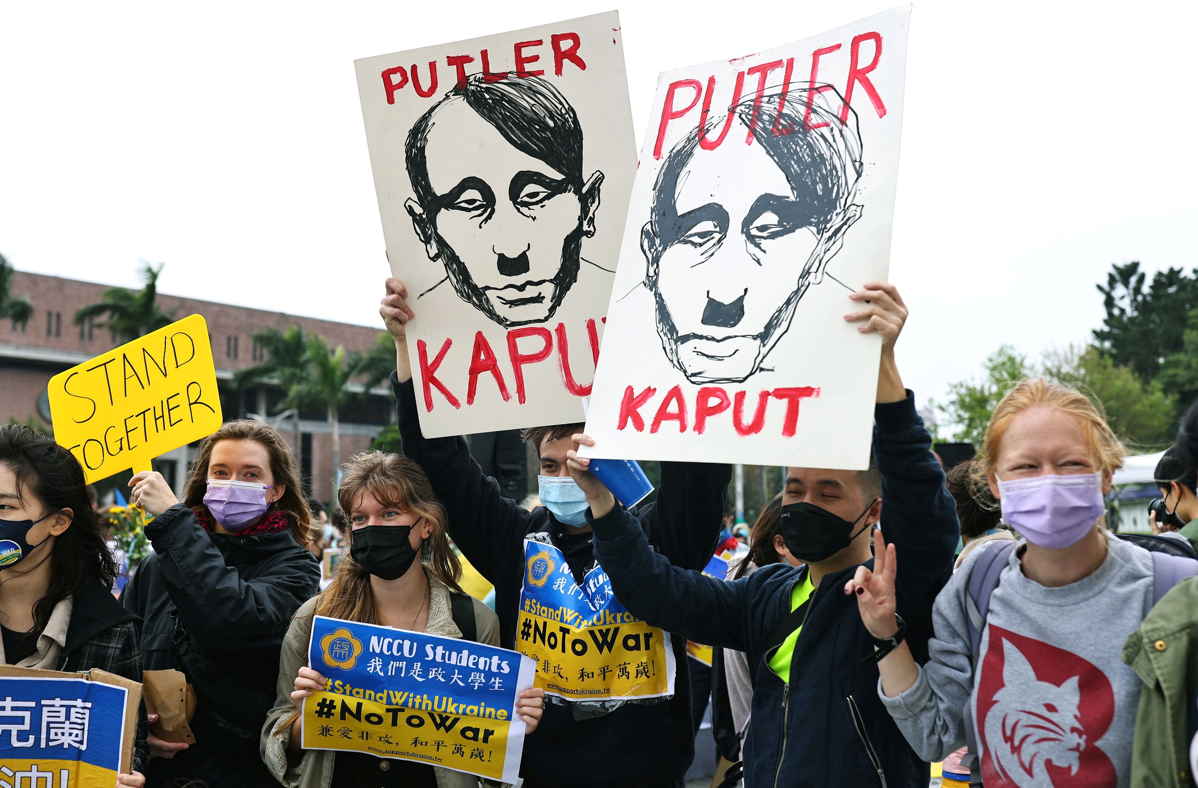Жители Тайваня на митинге против вторжения России в Украину, 6 марта 2022