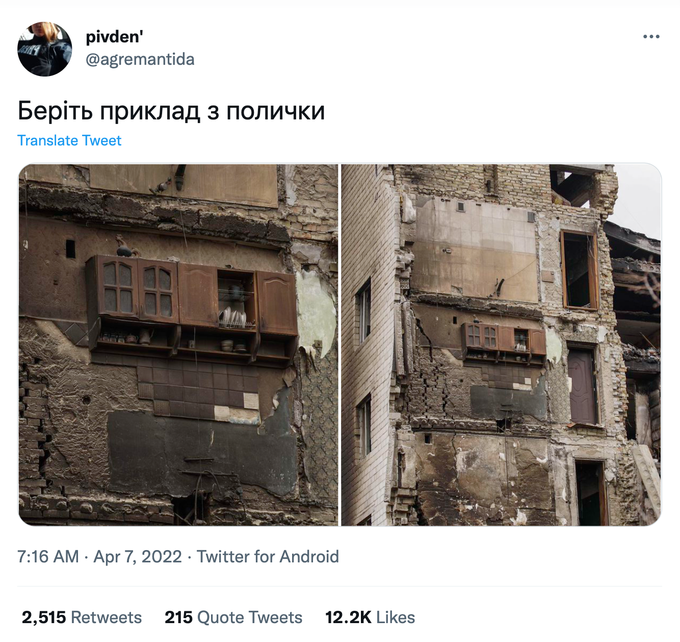 «Будь сильным, как этот кухонный шкаф», писали украинцы в соцсетях, публикуя этот снимок.
