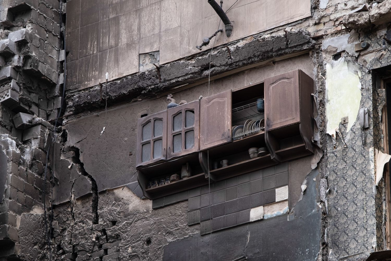 Фото кухонного шкафа в Бородянке, уцелевшего, несмотря на то, что дом, где он находится, был разрушен, стала одним из символов войны в Украине.