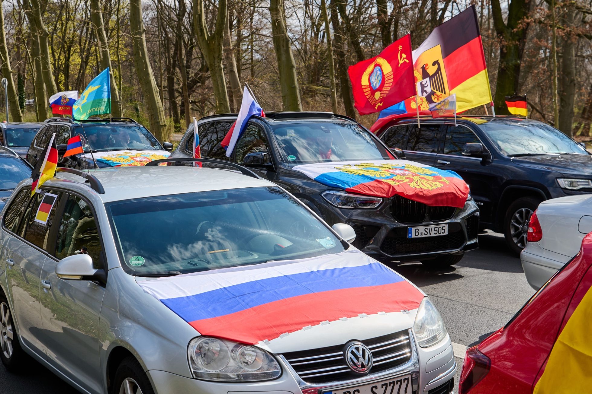 В последние недели в Германии состоялось несколько массовых пророссийских акций, включая масштабный автопробег с российскими флагами через центр Берлина. Зрелище российских флагов на немецких улицах разбудило украинское сопротивление — по меньшей мере один автомобиль, участвовавший в пробеге, был сожжен. Пока немецкой полиции удается разнимать пророссийские и проукраинские демонстрации, но обе стороны готовятся к 9 мая, когда десятки тысяч русскоязычных жителей Германии соберутся на гуляния в Трептов-парке. Какие настроения царят в сообществе русских немцев и среди проукраинских активистов — в репортаже «Медузы» из Берлина.