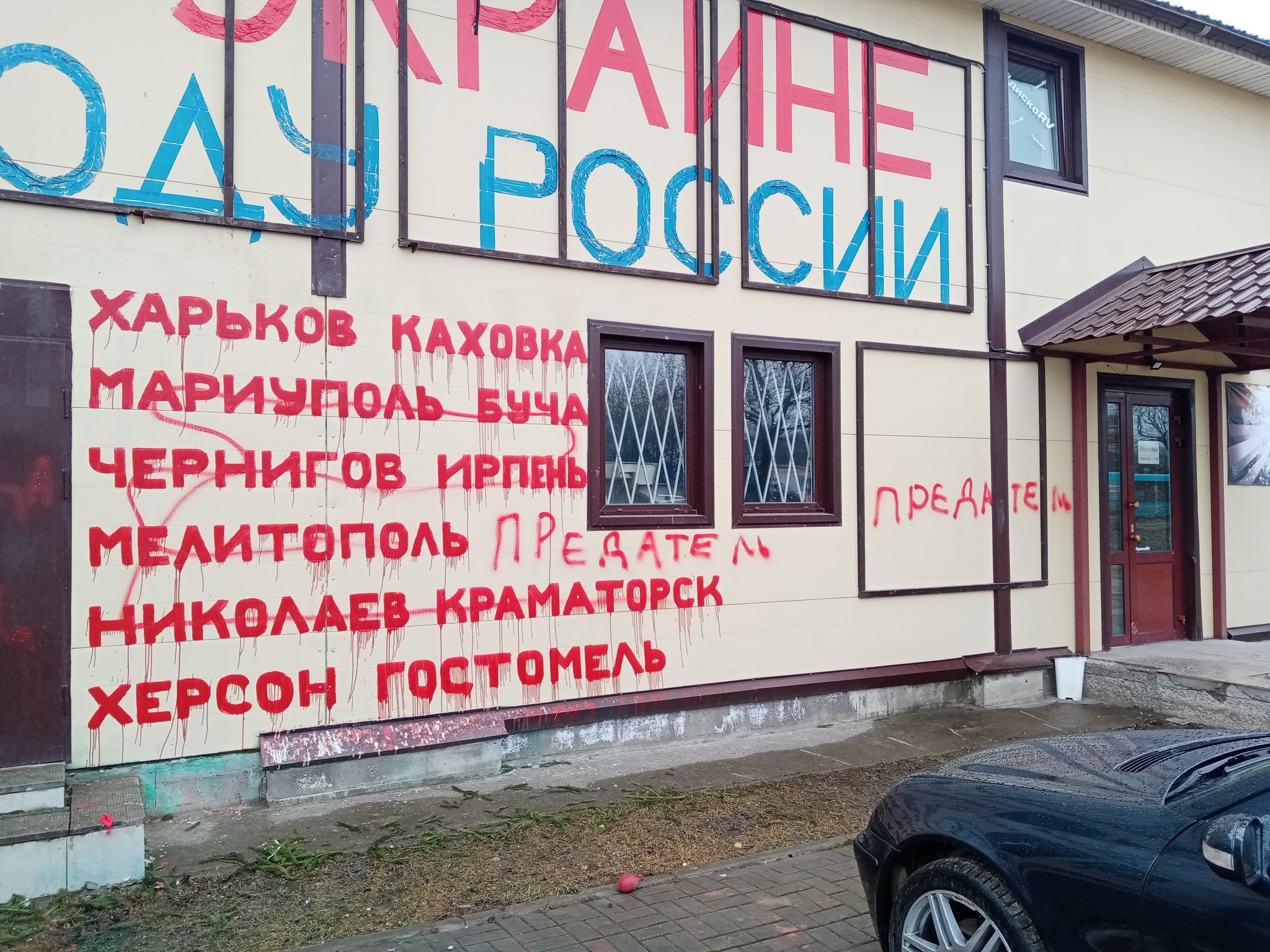 В селе Русско-Высоцкое в Ленинградской области на магазине активиста Дмитрия Скурихина неизвестные нанесли надписи "предатель" и "нацизм не пройдет". Под дверь магазина была вывалена куча навоза. Об этом Скурихин написал в фейсбуке.
