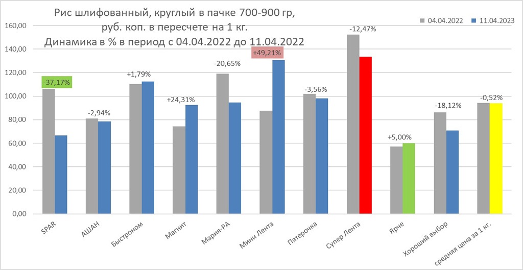 Стоимость риса в среднем сохранилась, однако тут же в одном из магазинов отмечен рост в самом дешевом сегменте почти на 50%.