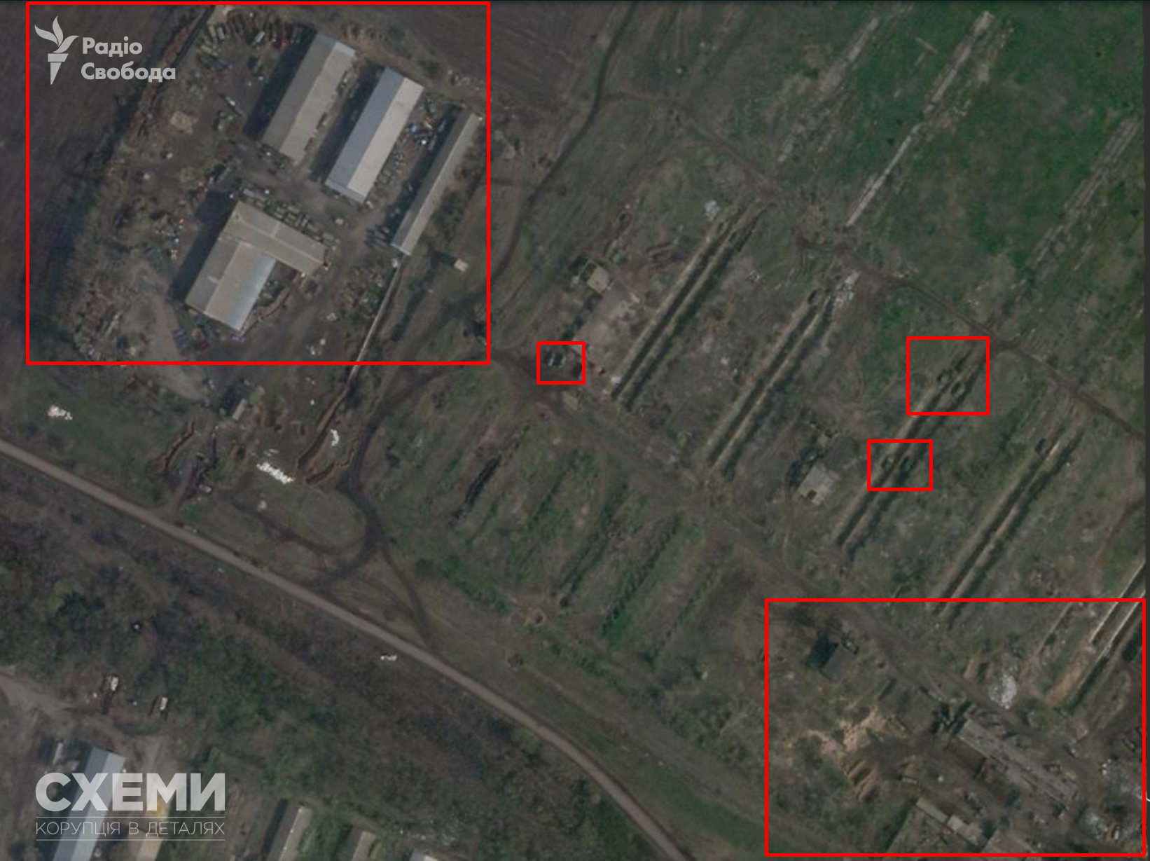 Также спутник зафиксировал скопление военной техники РФ у складских помещений.