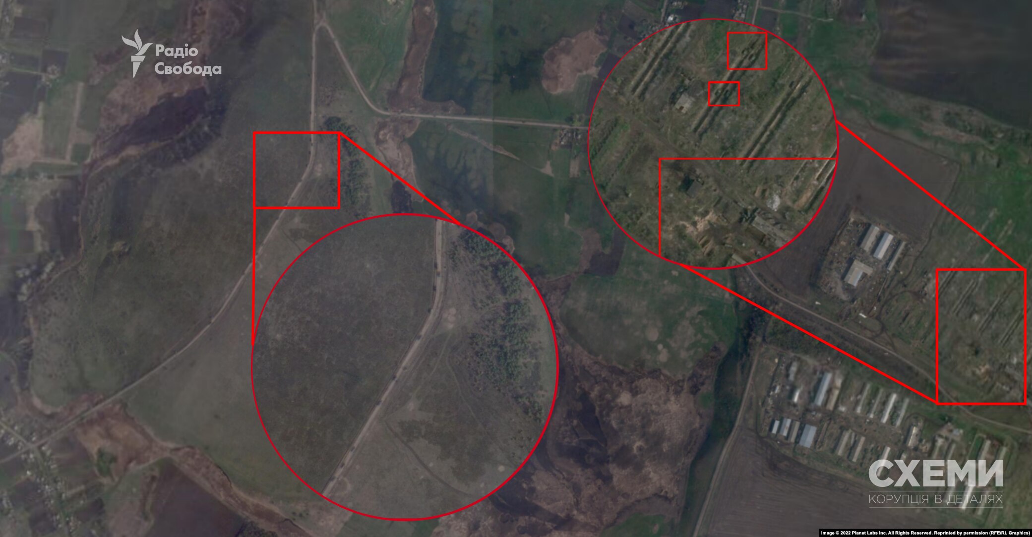 Военная техника РФ, которую с помощью спутниковых снимков Planet зафиксировали журналисты «Схем», 16 апреля в 9 часов утра выехала из Липчановки на трассу М03. В колонне журналисты насчитали не менее 26 единиц военной техники РФ.