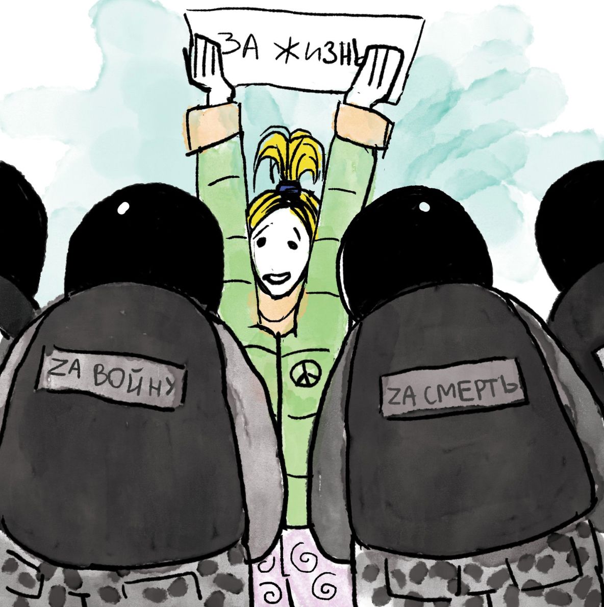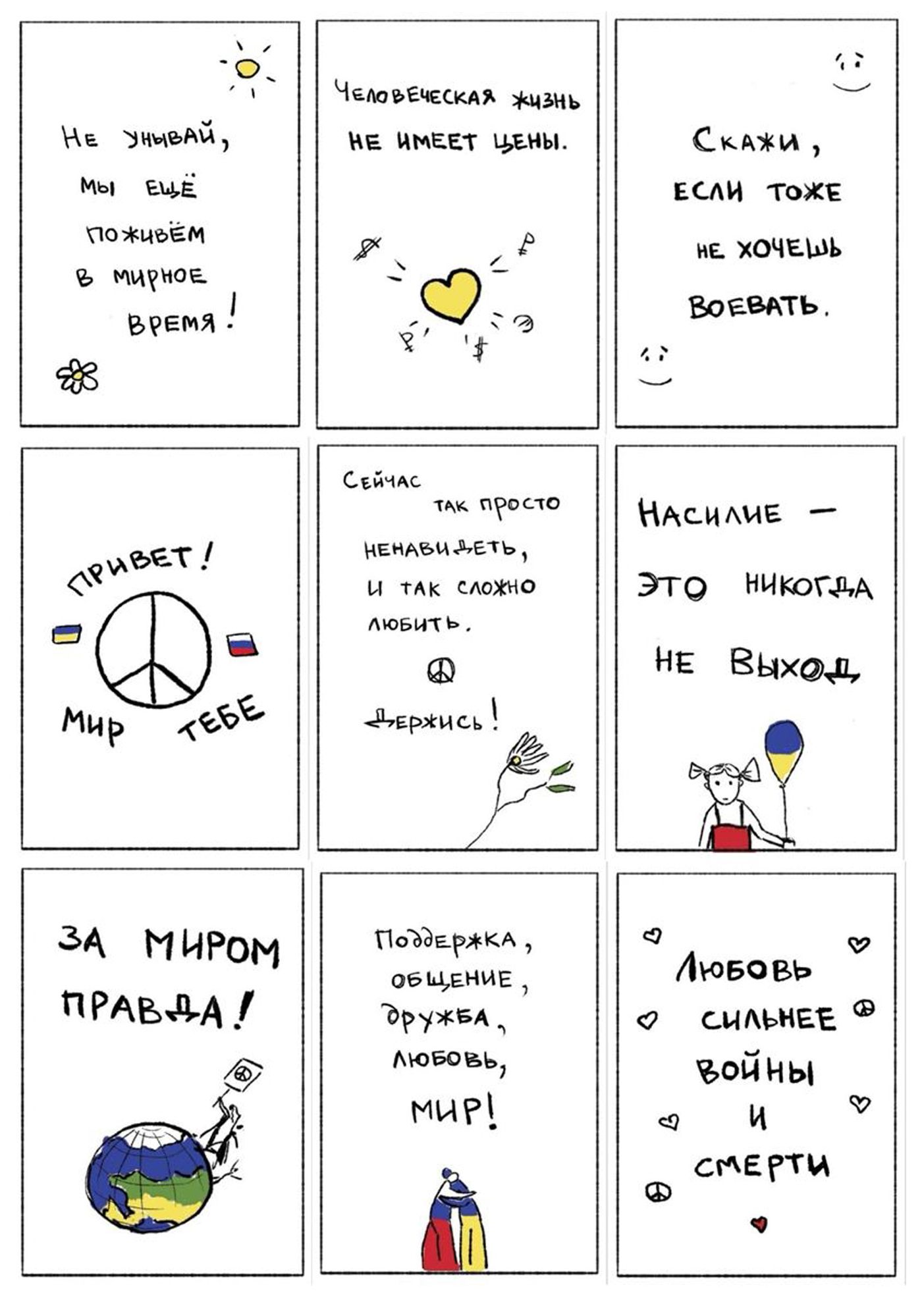 Ранее Саша нарисовала антивоенные стикеры: «Не унывай, мы еще поживем в мирное время!» и «Человеческая жизнь не имеет цены».
