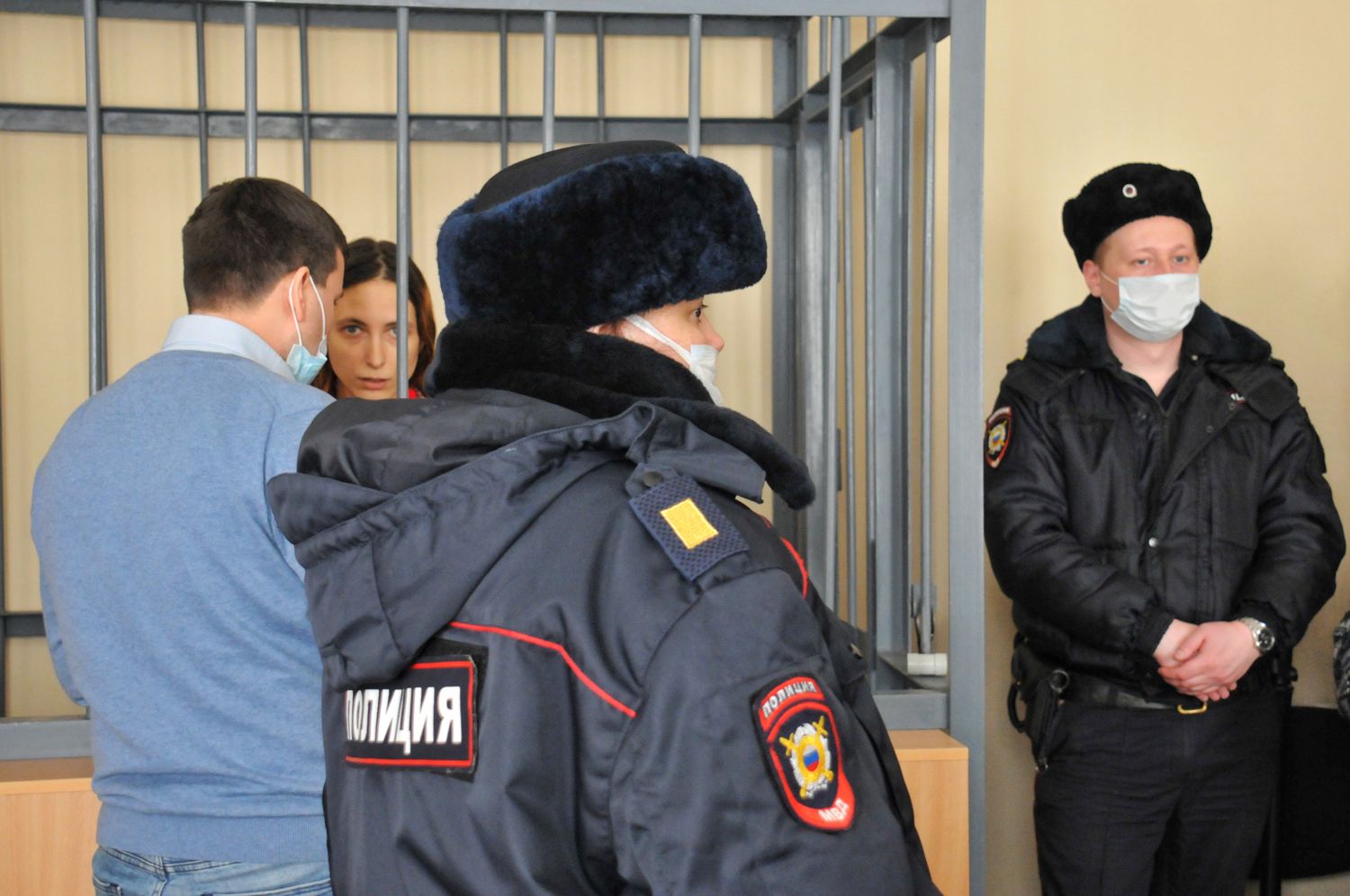 Скочиленко завели в зал в наручниках и посадили в камеру-клетку. Девушка выглядела изможденно, просила пить — но в суде воды не было, и бутылку искали среди пришедших. Несмотря на подавленное состояние, Саша благодарила собравшихся.