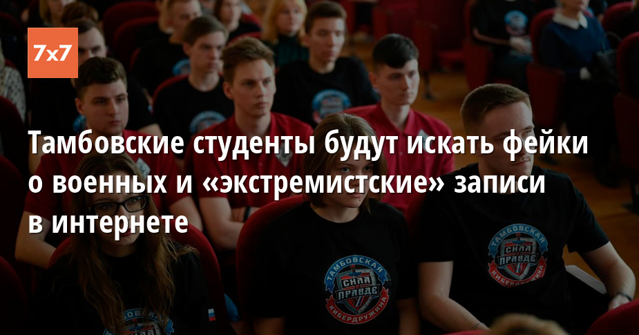 Кибердружины пяти учебных заведений Тамбовской области 15 апреля заключили соглашение о сотрудничестве. Студенты вузов будут выявлять фейки про Российскую армию в Украине, а учащиеся колледжей — информацию о проявлениях терроризма и экстремизма. В киберотряды вошли студенты Тамбовского бизнес-колледжа, Тамбовского филиала РАНХиГС при Президенте РФ, Тамбовского государственного технического университета, Тамбовского госуниверситета им. Г. Р. Державина и Мичуринского государственного аграрного университета.