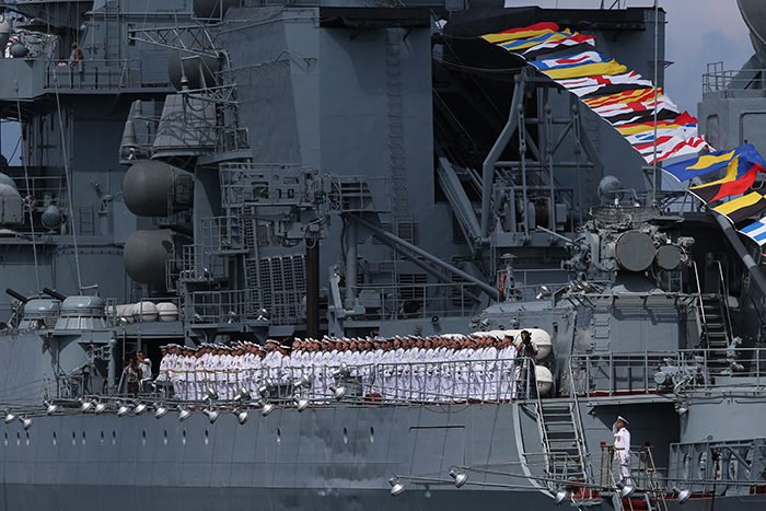 - The Insider насчитал в ролике около 100 моряков. А военный аналитик H.I. Sutton на основании спутниковых снимков с плаца посчитал, что на построении присутствовали примерно 240 человек.