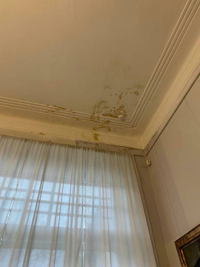 Когда с потолка текла вода, просто несколько экспонатов, которые висели в протекающем углу, снимали. Угол начал подсыхать и картины - шедевры мировой живописи, на моих глазах работники музея возвращали на свои места. В зале стоял ужасный запах, наверняка в воздухе плесень и грибок! Значит, никто на ремонт даже и не надеялся, а ведь выставка должна работать!
