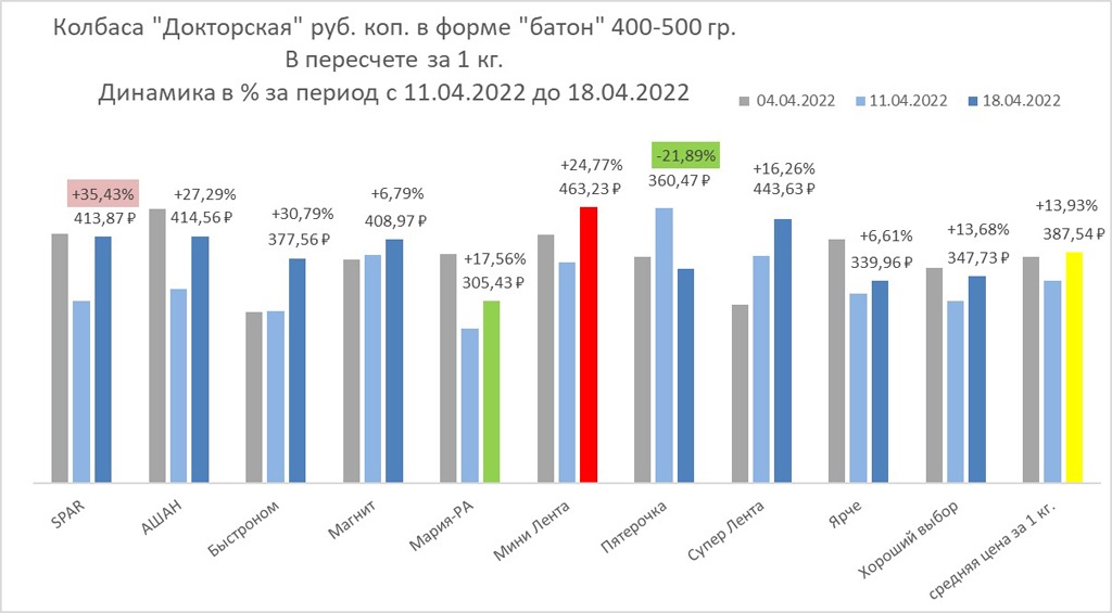 Мониторинг проводился 18 апреля в 20 торговых точках во всех районах города. Два предыдущих — 4 и 11 апреля.