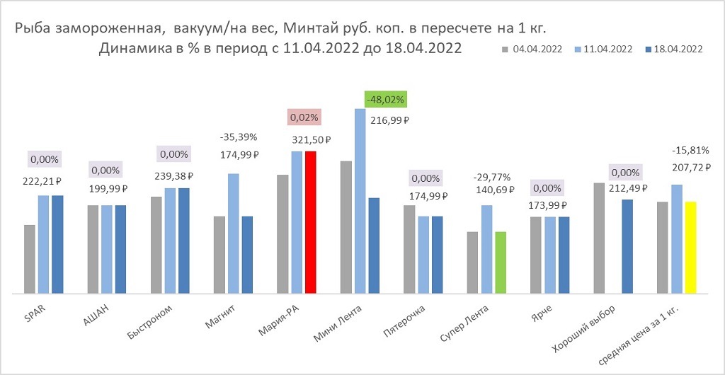 Рыба либо не меняла цену, либо подешевела почти везде. В одном из магазинов стоимость упала в полтора раза.
