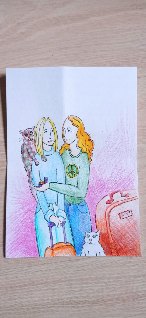 На днях Саша передала, что любит меня и думает обо мне, а еще нарисовала рисунок — там мы и наше будущее. Саша всё выражает через творчество, даже самые темные моменты.