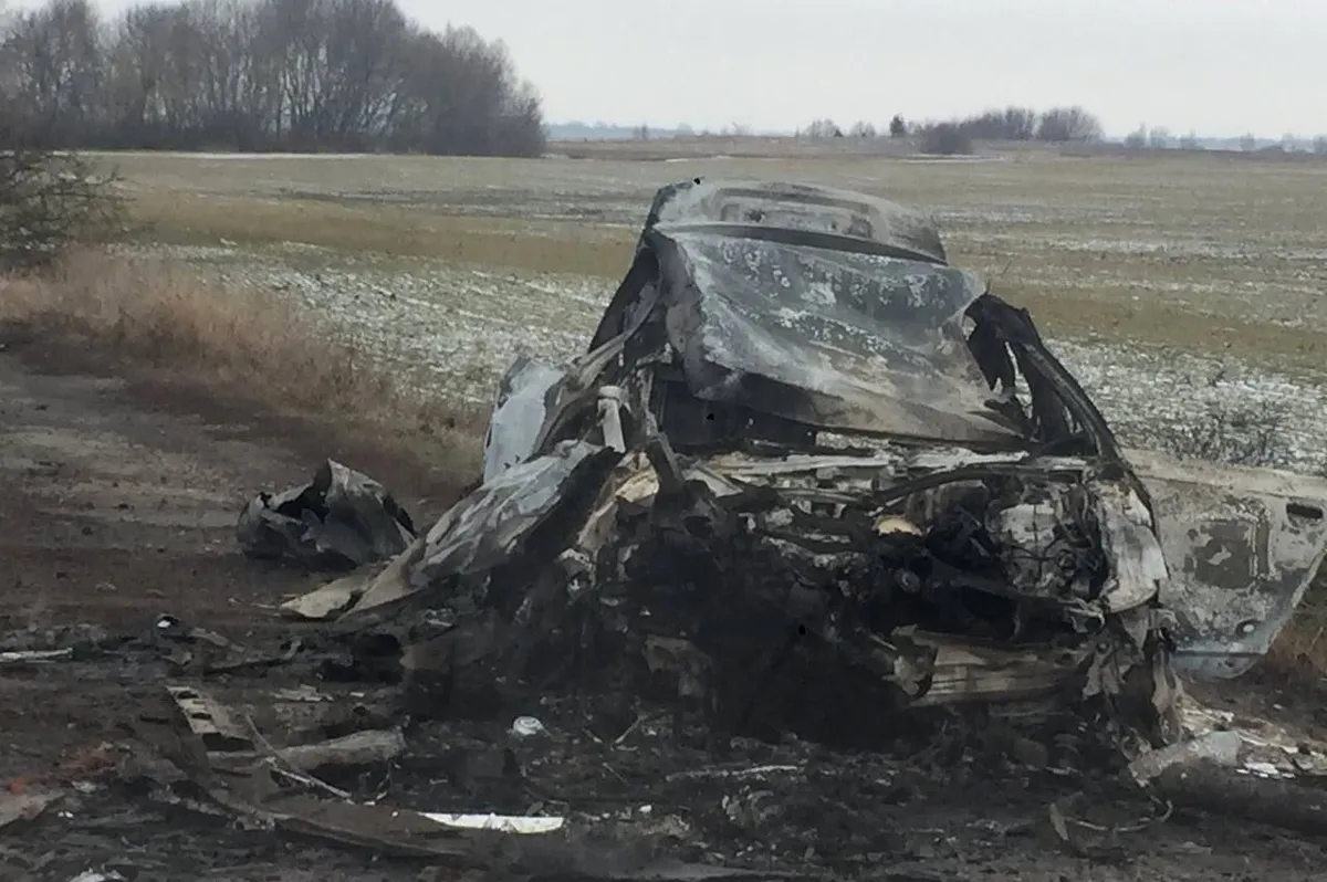 Российские военные расстреляли и переехали на танке автомобиль, на котором пыталась эвакуироваться семья Андрюши Фото: личный архив ВиталияЭто первые погибшие у нас. Потом поступило указание сверху не провоцировать, потому что будут жертвы, — все оружие попрятали. Именно в нашем населенном пункте оккупации не было, они только проезжали [через него]. Рядом с нами Макеевка — там они стояли. Флаг украинский почему-то не сорвали с сельсовета, разрушили несколько домов, людей не трогали. Когда привозили товар в магазин, чтобы раздать людям, российские военные приезжали туда на БТР и отбивали магазин. В селе Коломийцевка вынесли из магазина все, даже женские тапочки, почему-то были падки на женскую одежду — я не знаю почему.