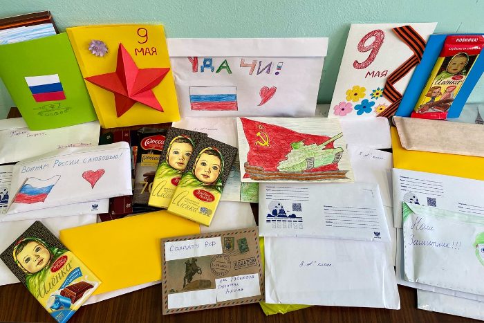 «Бумага» выяснила, что в Петербурге проходит акция «Воинам России с любовью», в рамках которой школьники пишут письма российским военным, которые были ранены в Украине и сейчас лечатся в городских госпиталях. Однако в этом случае детей не просят складывать письма в форме треугольника. Ученики используют конверты, рисуя на них российский флаг, танки и сердца.
