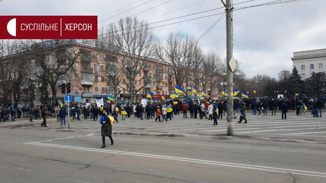 Уже 4 марта россияне хотели провести в городе митинг за создание «Херсонской народной республики», но ничего не вышло, сообщило местное издание «Суспiльне Херсон». Вместо этого на митинг вышли люди с украинскими флагами.