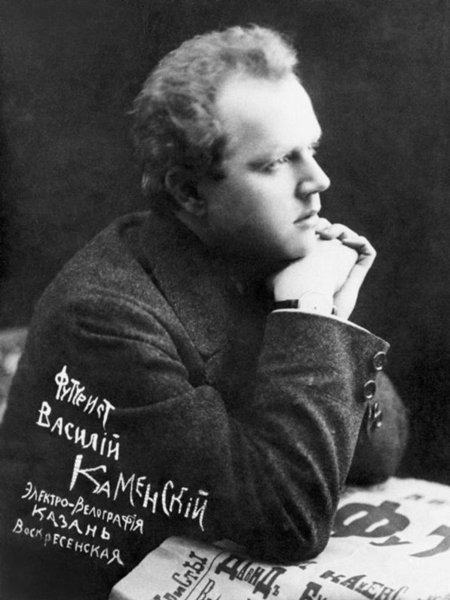Василий Васильевич Каменский (1884 – 1961) родился на шедшем по Каме пароходе, возле города Сарапул. Отец его был смотрителем золотых приисков. Детство его прошло в селе Боровском Пермской губернии. В возрасте четырех лет лишился родителей и воспитывался в семье родственников матери. «Все детство прошло в доме на камской пристани среди пароходов, барж, лодок, крючников, матросов, водоливов, капитанов и бесконечных куч грузового товара», – вспоминал он.