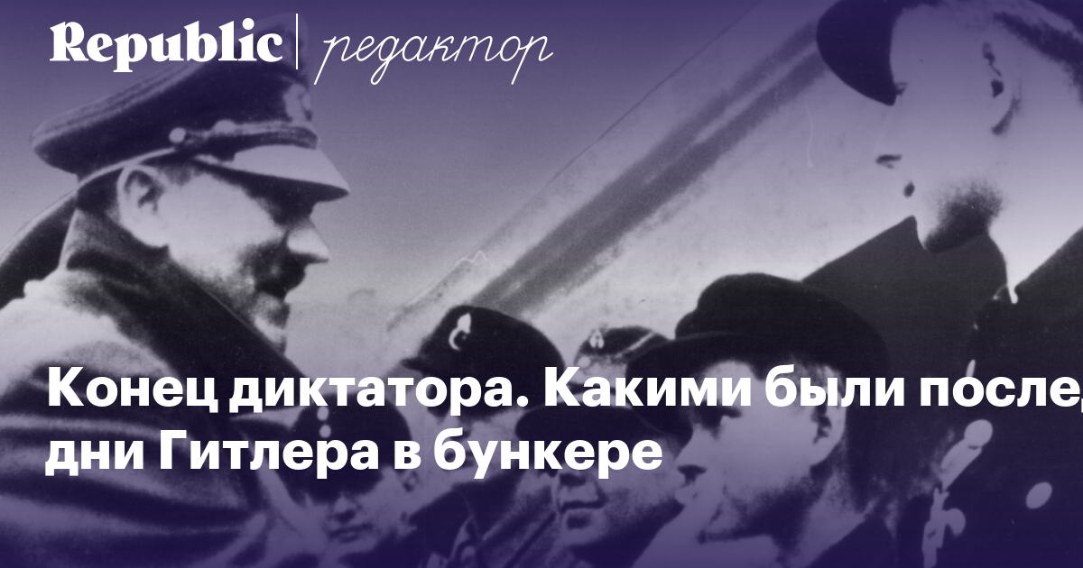 Некоторые из наших читателей видели советскую киноэпопею «Освобождение» 1971 года, на основании которой многие сформировали свое представление о последних днях жизни Адольфа Гитлера и тех, кто его окружал, в бункере. В 2004 году на экраны вышел немецкий фильм режиссера Оливера Хиршбигеля Der Untergang («Закат»), который на русский язык был переведен как «Бункер». В нем еще более красочно передается психопатическая атмосфера, царившая в бункере фюрера в апреле 1945 года. Если кто и не видел фильма, то явно хоть раз сталкивался с интернет-мемами, сделанными из фрагментов этой картины, когда Гитлер на одном из совещаний взрывается в гневе.