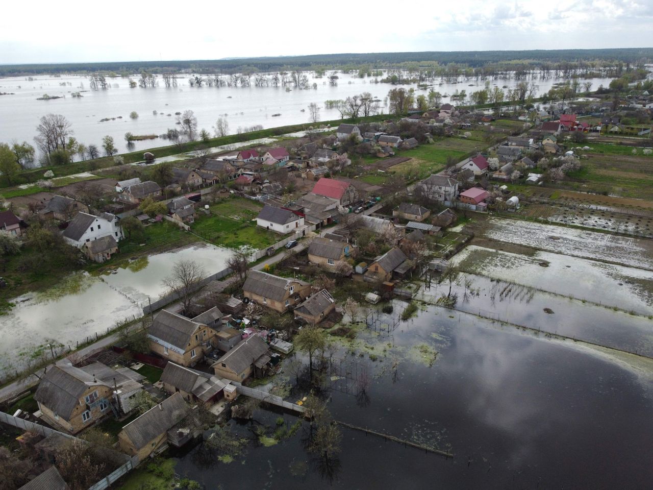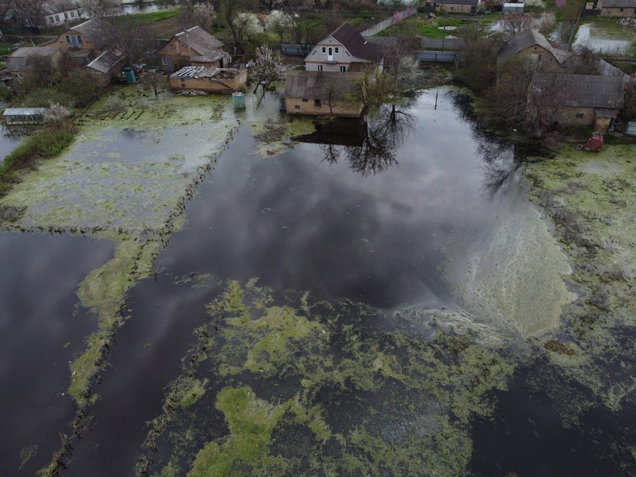 По одной из версий, наводнение спровоцировали сами местные жители, взорвав дамбу через реку Ирпень. По другой — удар по дамбе нанесли российские военные. Фотографии ниже сделаны 30 апреля.