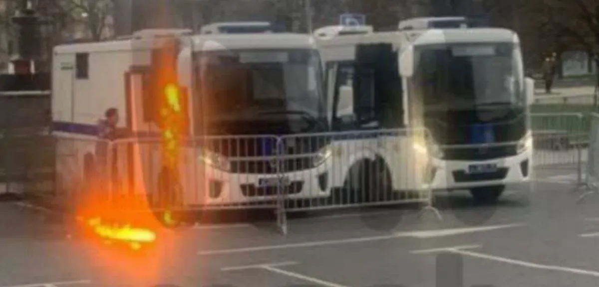 В Москве на площади Революции в автозак бросили коктейль Молотова. Машина загорелась