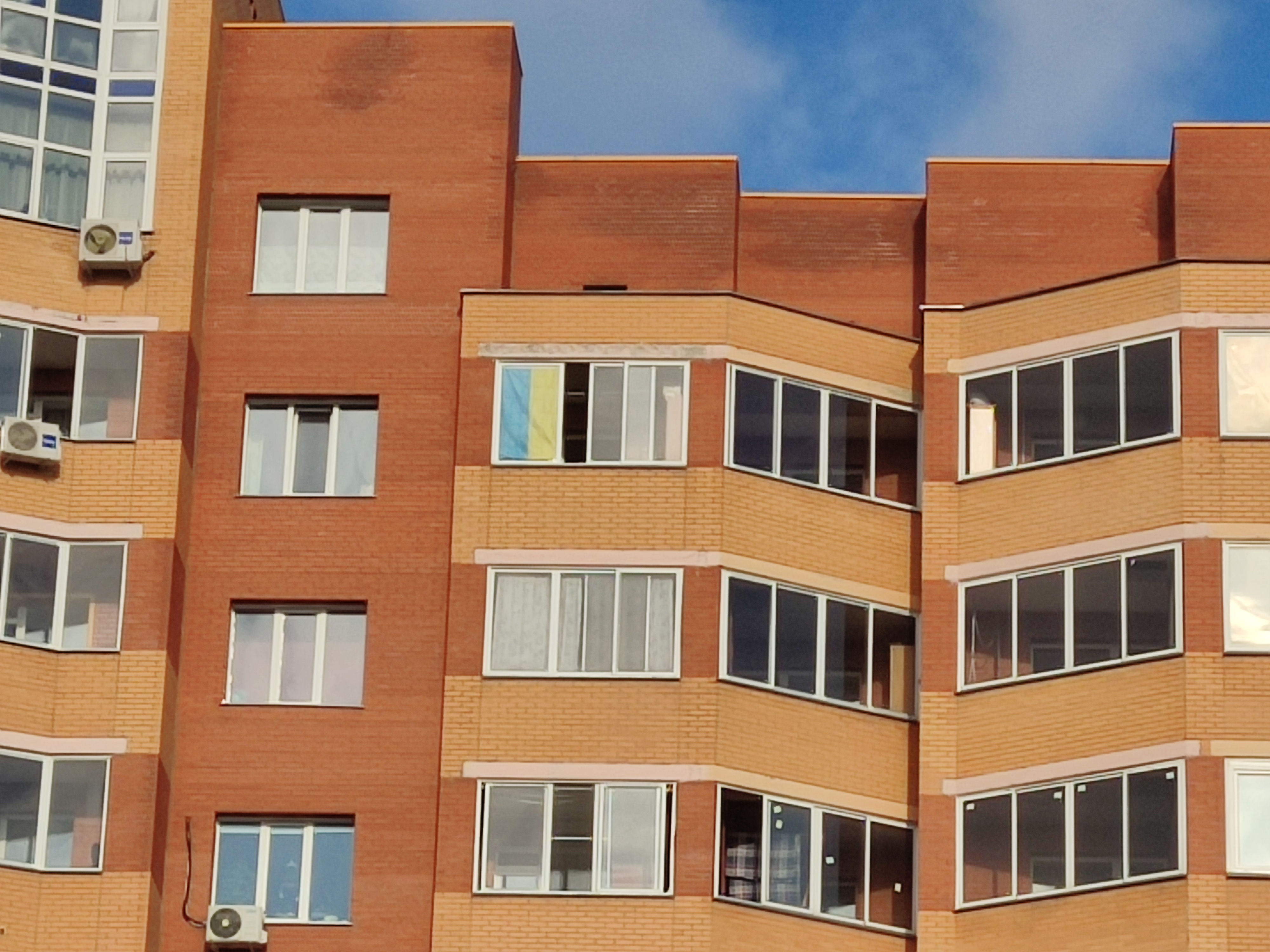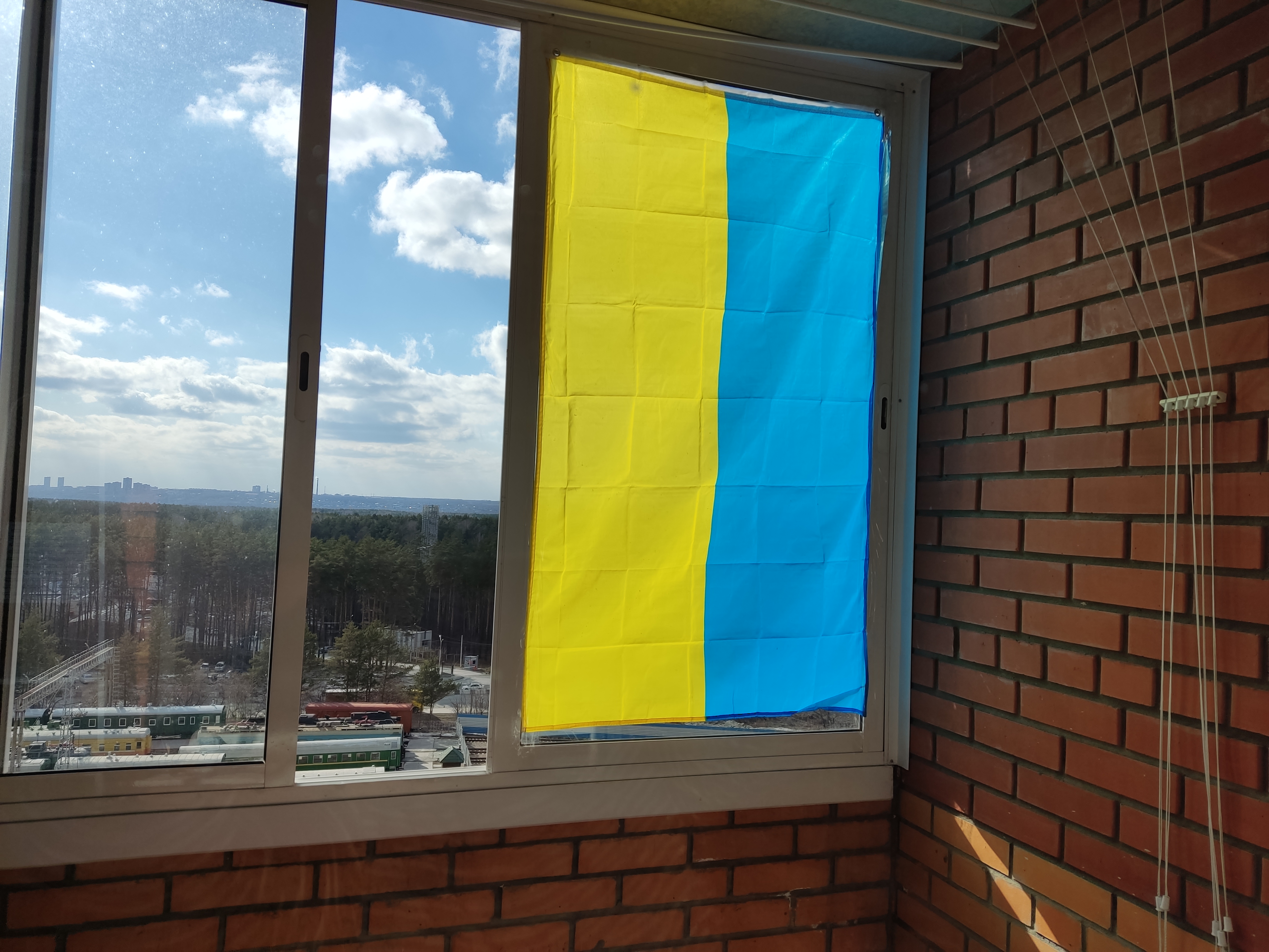 Флаг провисел на ее балконе с 3 марта до 1 апреля, а потом его украли прямо с 9-го этажа не без помощи местной полиции. После этого пенсионерка заказала новый флаг и закрепила его изнутри балкона, хотя ей и было "очень страшно". Корреспондент Сибирь.Реалии поговорил с Людмилой Ефимовной о том, почему она поддерживает в этой войне Украину.