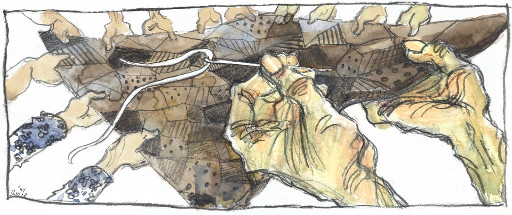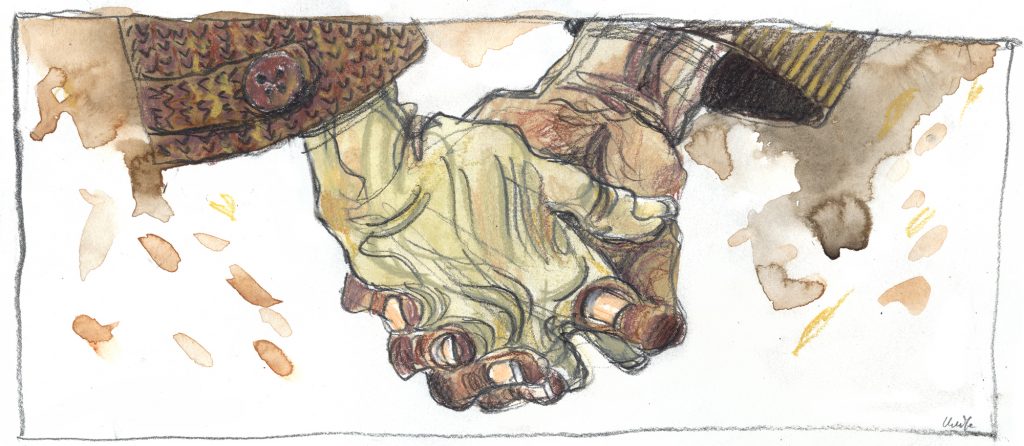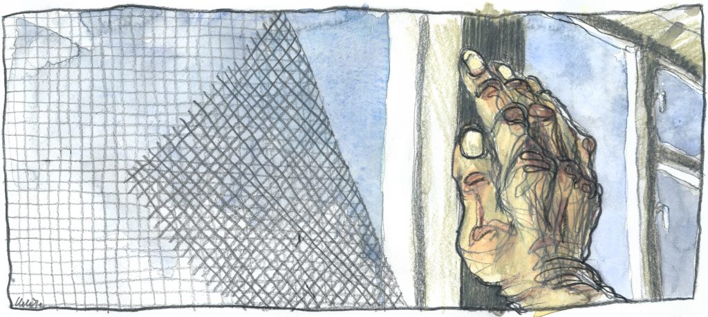 Один из таких монологов задел Марину за живое — женщина в очереди рассказывала про самоубийство своей 96-летней мамы. Та — в прошлом математик, инженер по специальности — последние годы не вставала с постели. Причиной этого был перелом шейки бедра. Ее постель была оборудована таким образом, чтобы она могла справить нужду и позвать кого-то из близких или сиделку, дернув за веревку с колокольчиком.