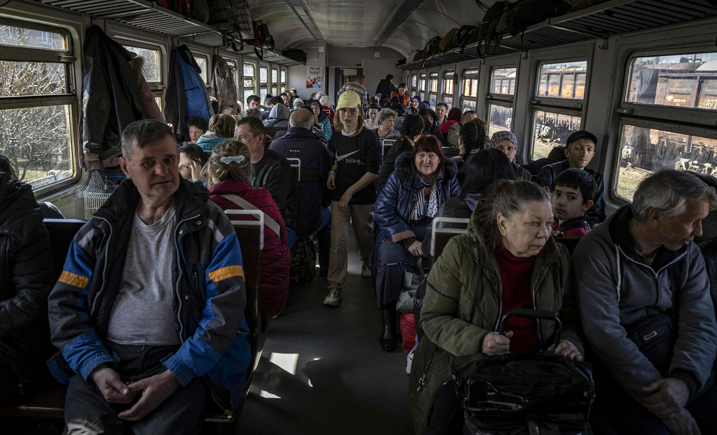 Люди в поезде недалеко от Северодонецка, 7 апреля 2022 года. Фото: Fadel Senna / AFP