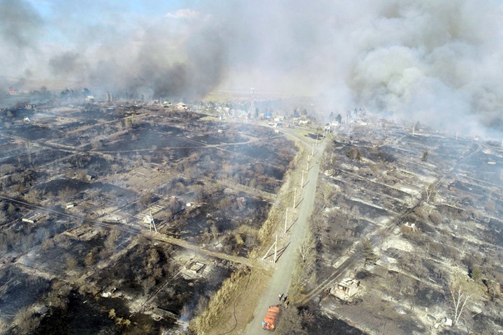 UPD (19:36) «Подсчитать количество пострадавших от огня участков и построек в данный момент невозможно», — заявили в МЧС.