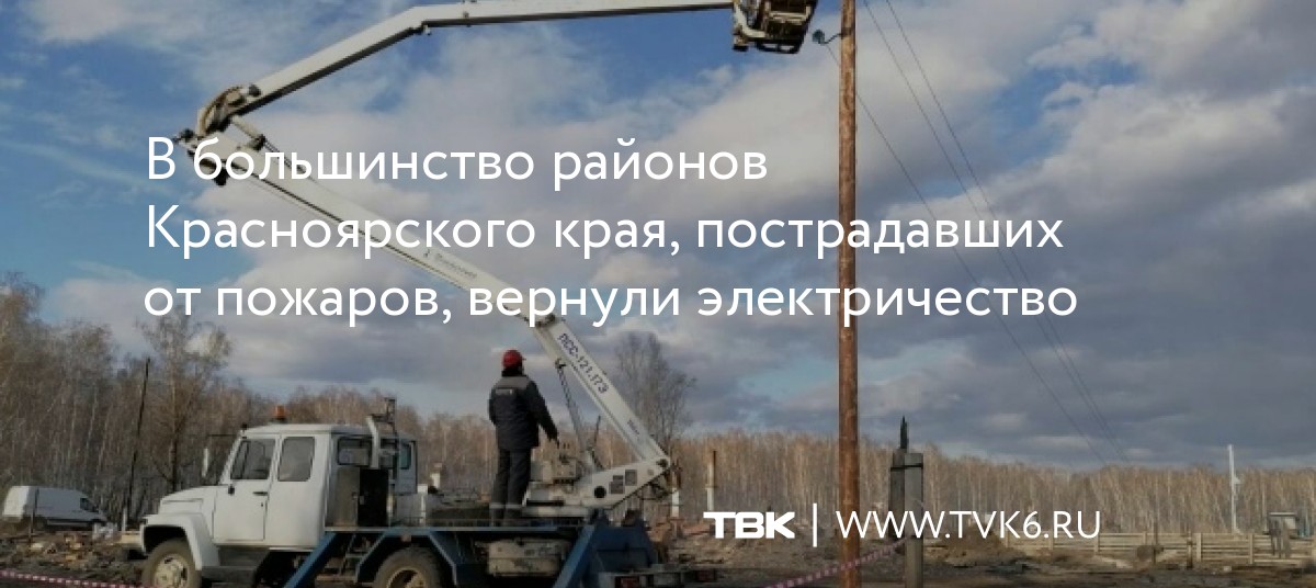 В большинство районов Красноярского края, пострадавших от пожаров, вернули электричество