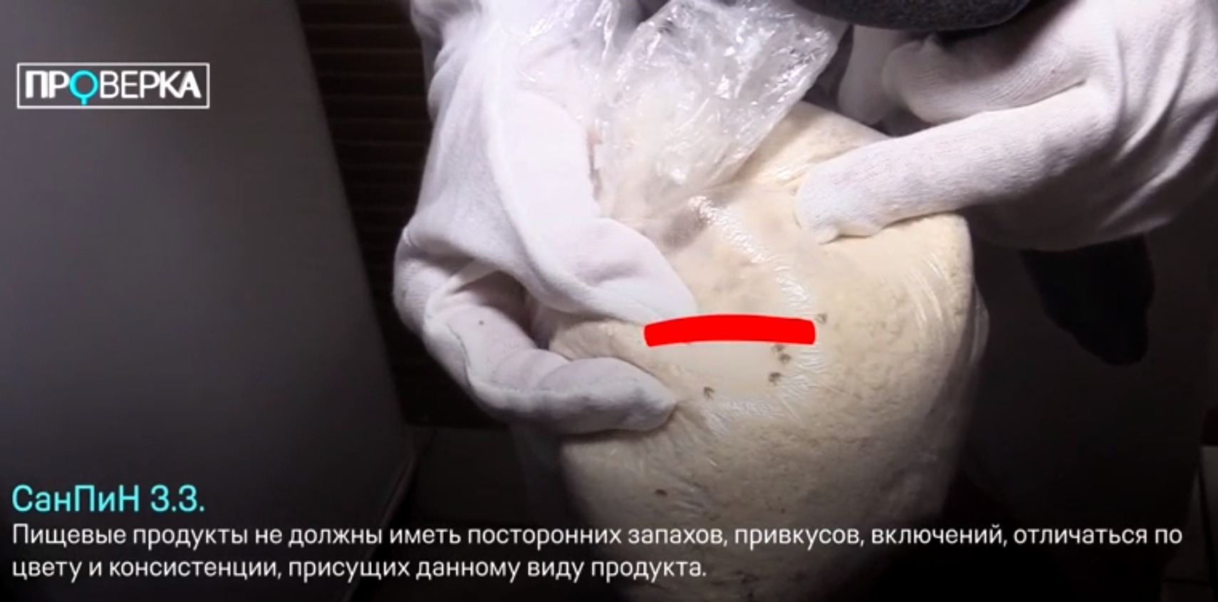 От антисанитарии не спасти здесь даже сырье – в холодильнике Екатерина нашла пыльный пакет с тестом, внутри видно много черных точек. Что это и насколько токсично – ведущая боится и предположить. О маркировках на продуктах сотрудники и подавно забыли.