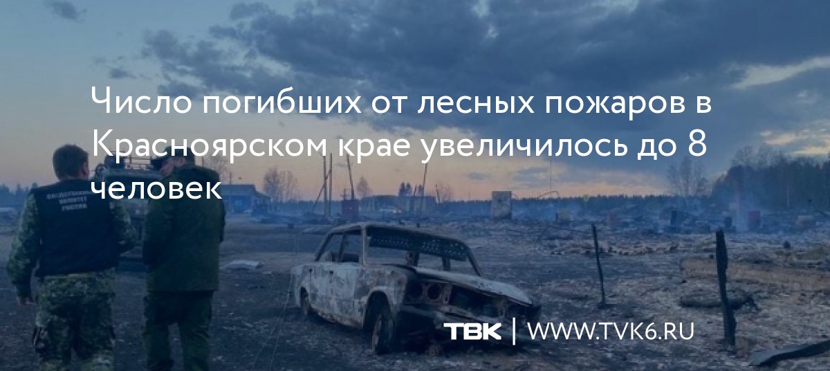 По данным краевого Следственного комитета, среди погибших из-за пожара 7 мая были: 2 женщины и мужчина из села Талажанка Казачинского района; мужчина и женщина в селе Никольск Шарыповского района; женщина в городе Заозерный Рыбинского района; 2 женщины в деревне Ашпатск и селе Курай Дзержинского района, которые находились непосредственно в очаге пожаров. Ранее ведомство сообщало о 5 погибших.