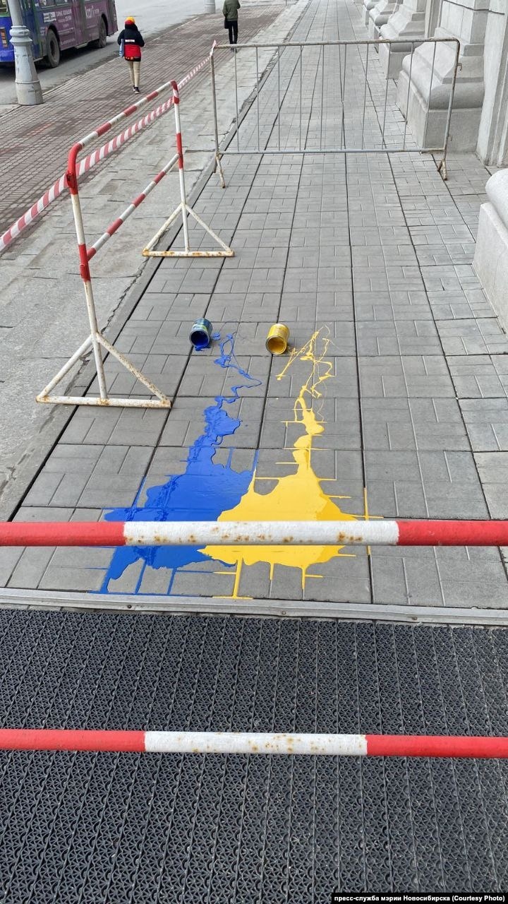 Суд оштрафовал новосибирца, облившего крыльцо мэрии желтой и синей краской