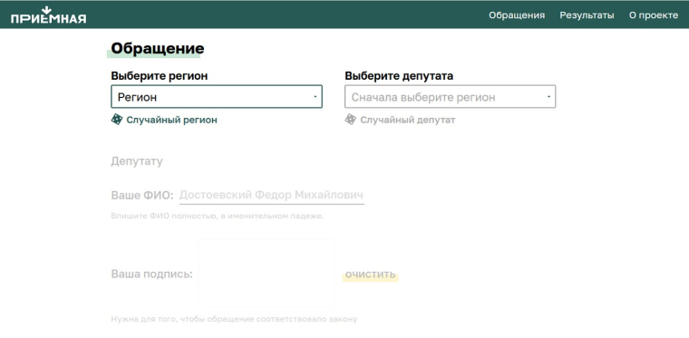 — В «Приемной» есть рандомайзер — возможность выбрать случайный орган власти или депутата, которым и будет направлено обращение. Как вы его придумали?