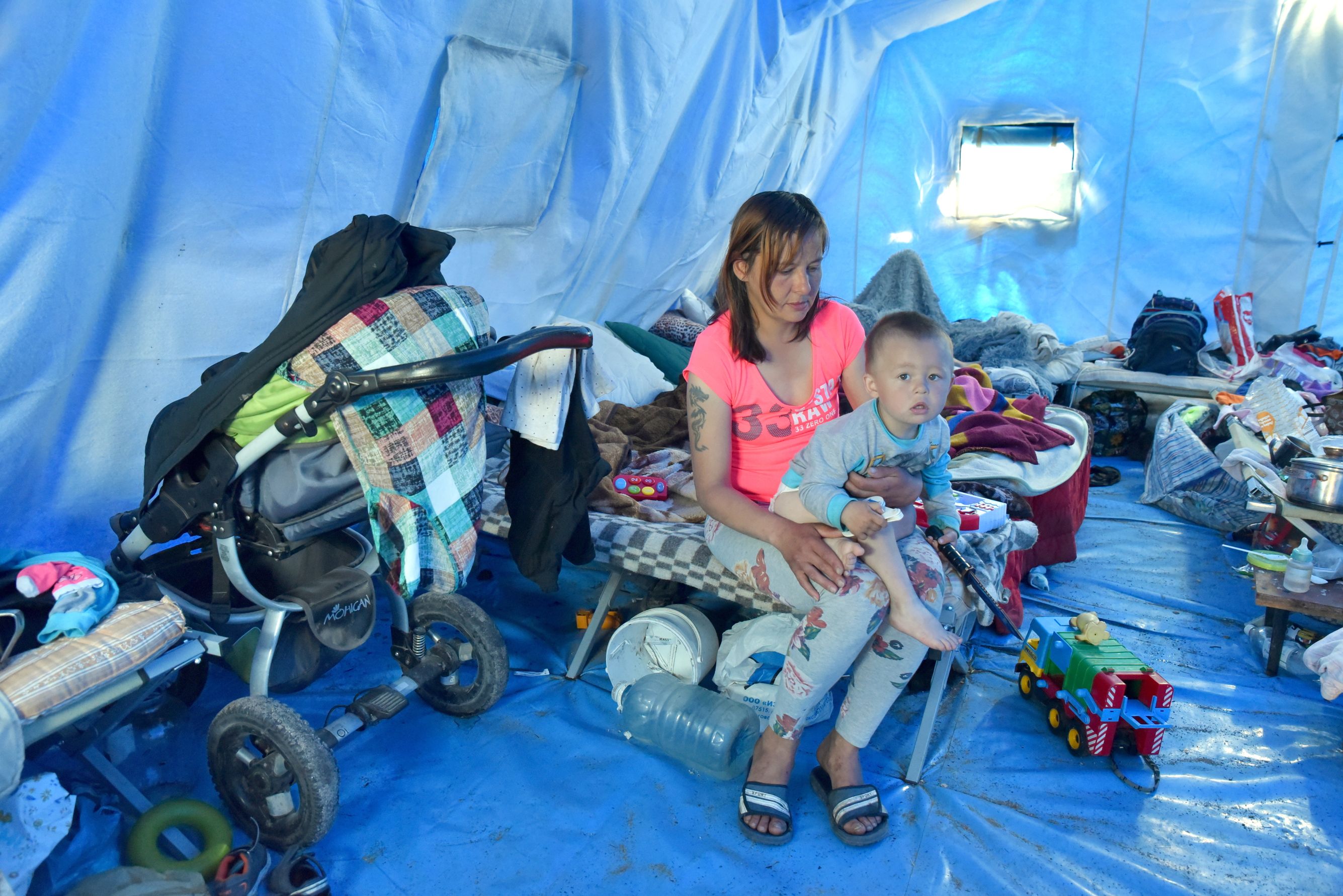 Эвакуированные мирные жители Украины в пункте временного размещения в селе Безыменное