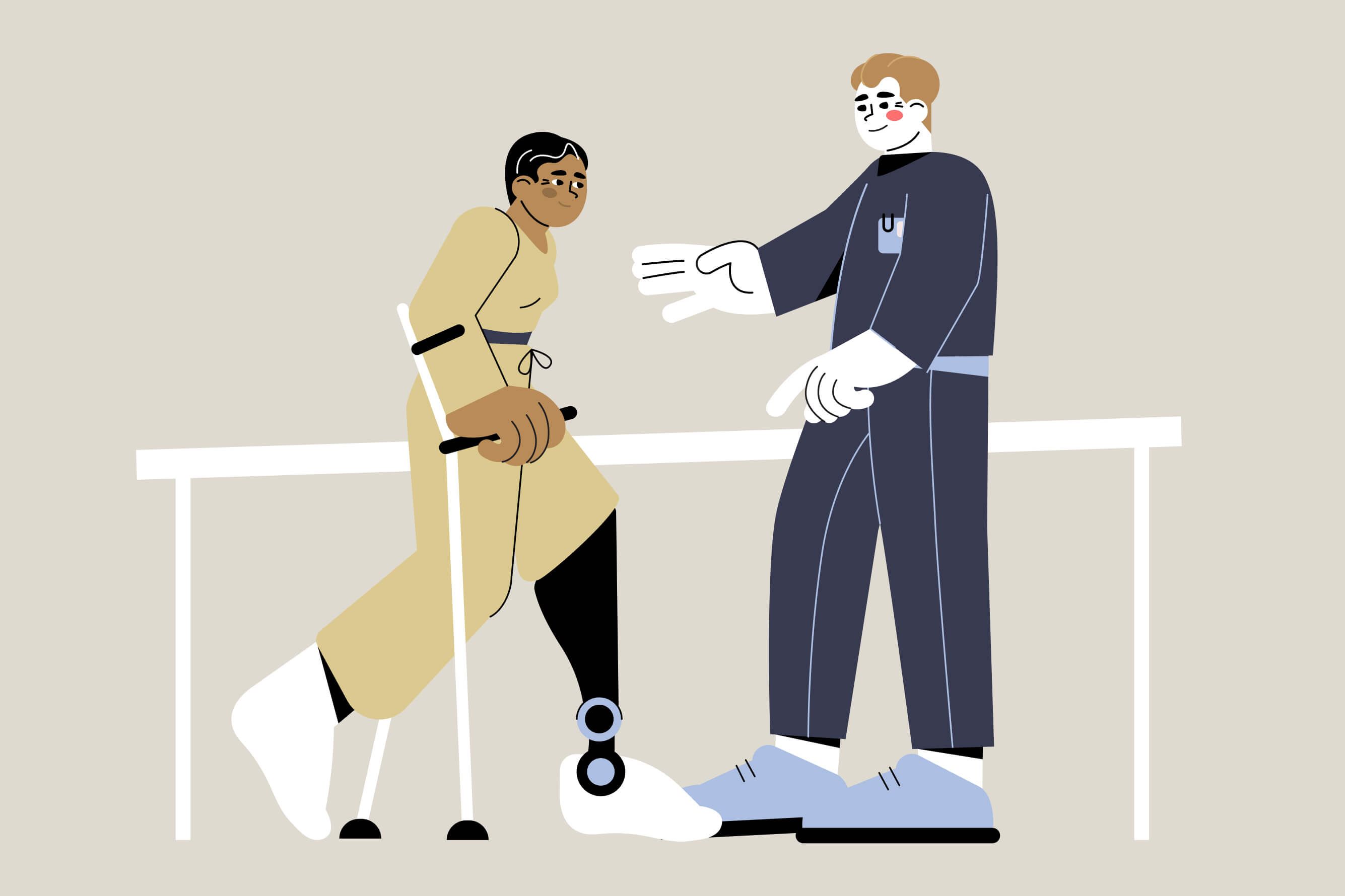 Потребуется целая команда, которая не всегда готова работать бесплатно. Особенно нужен физический терапевт: он оценит ситуацию, обсудит ожидания и цели — и объяснит, как будет выглядеть реабилитация и что можно сделать уже сейчас (например, если планируется ампутация ног, специалист объяснит, как пользоваться коляской). Если вы хотите использовать протез, следует проконсультироваться с протезистом. Хирург тоже должен знать о ваших планах: это может повлиять на технику операции, которую он будет проводить (например, врач может расположить нервы так, чтобы протезом было удобнее пользоваться).