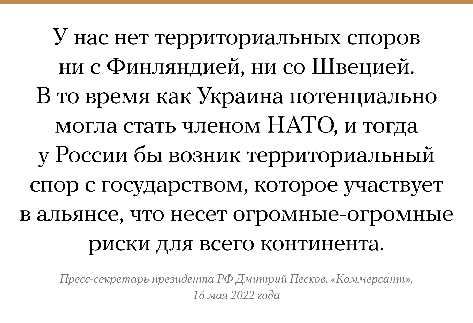 Украина в НАТО — это угроза, а Финляндия и Швеция — (пока) нет. Как так? Объясняет Кремль