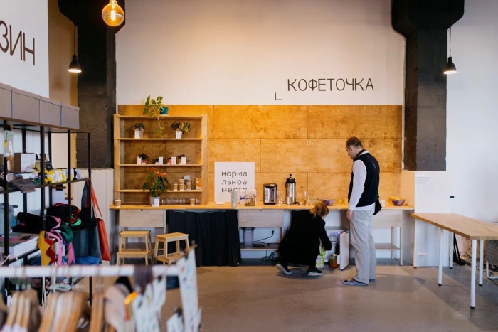 В петербургском «Севкабель Порту» заработало инклюзивное пространство «Нормальное место». В кластере разместили магазин «Спасибо!», мастерские «Простые вещи», арт-студию «Перспектив», веганское кафе «Огурцы» и другие известные благотворительные проекты.