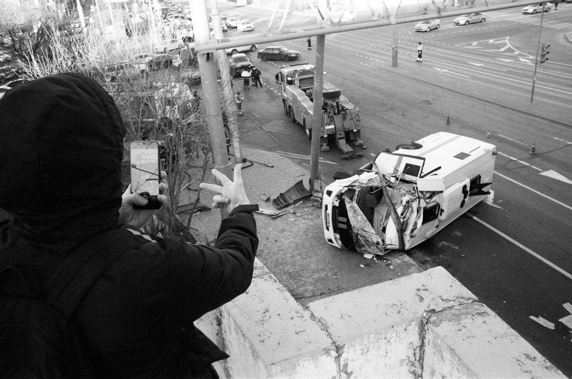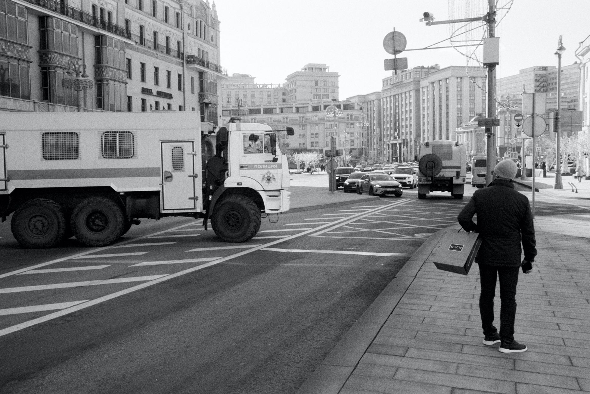 Темы удавалось находить в новостных сообществах. На что-то я натыкался сам, просто бродя по городу. Помню вечер, когда я поехал снимать здание правительства Москвы, напротив гостиницы «Украина». С той ночи в этом здании из горящих окошек по ночам стали выстраивать букву «Z». Я увидел эту «Z» вживую, стоя на мосту (я пришел с набережной Тараса Шевченко). С того вечера Москва для меня изменилась.