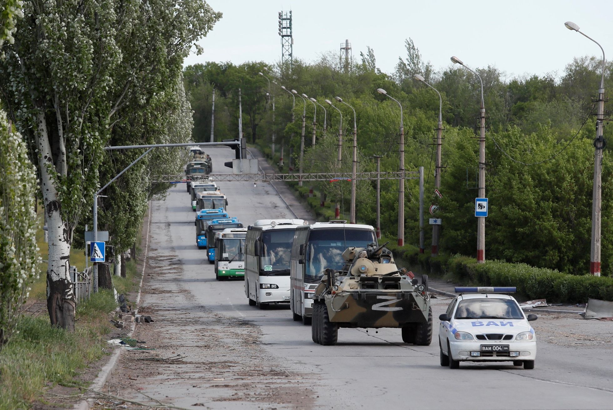 О выезде с «Азовстали» автобусов с, предположительно, сдавшимся украинскими военными также сообщило РИА Новости. Агентство отметило, что за несколько часов до начала движения автобусов в районе завода не было слышно выстрелов и взрывов.