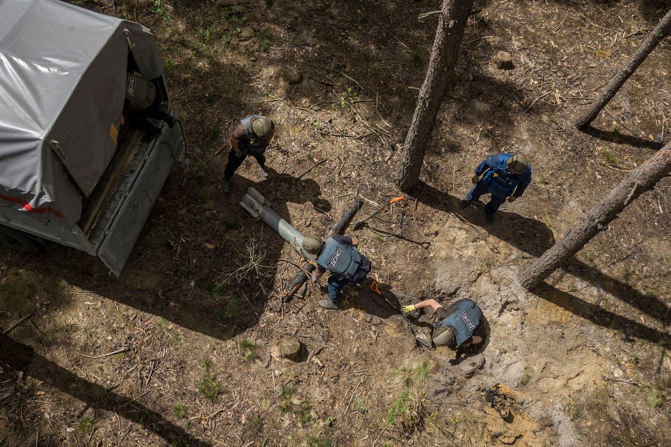 Christopher Furlong / Getty Images Киевлянка с ребенком кормит голубей у окопа в городском парке. После отступления российских войск от столицы в Киев постепенно возвращается мирная жизньCarlos Barria / Reuters / Scanpix / LETA Сотрудник Государственной службы чрезвычайных ситуаций (ГСЧС) проводит разминирование приусадебного участка под Бородянкой. Город на правом берегу Днепра, сильно пострадавший от артиллерийских обстрелов российскими войсками, был освобожден от оккупации 1 апреляCarlos Barria / Reuters / Scanpix / LETA Саперы ГСЧС Украины идут в лес за жителем Бородянки, который ведет их к неразорвавшемуся снарядуCarlos Barria / Reuters / Scanpix / LETA Саперы ГСЧС Украины в лесу под Бородянкой удаляют остатки ракеты, выпущенной по городу российскими войскамиCarlos Barria / Reuters / Scanpix / LETA ГСЧС Украины проводит контролируемый подрыв неразорвавшихся боеприпасов и мин, обнаруженных под Бородянкой