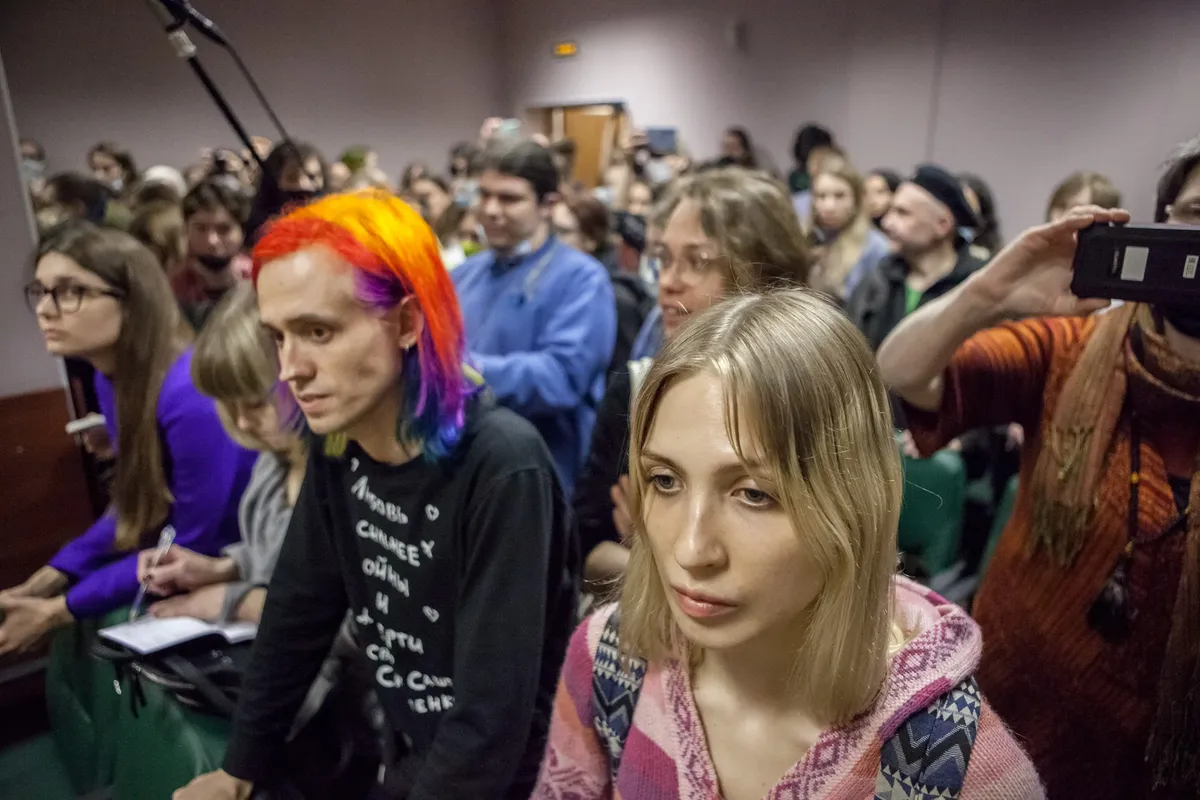 В горсуд 17 мая пришли парень с девушкой — первокурсники юрфака, которые держались в стороне от группы поддержки Саши. Корреспондентам «Новой газеты. Европа» они объяснили: «Не все же пришли заступиться за Скочиленко. В ее действиях есть состав преступления. Мы здесь, потому что нам любопытен сам процесс».