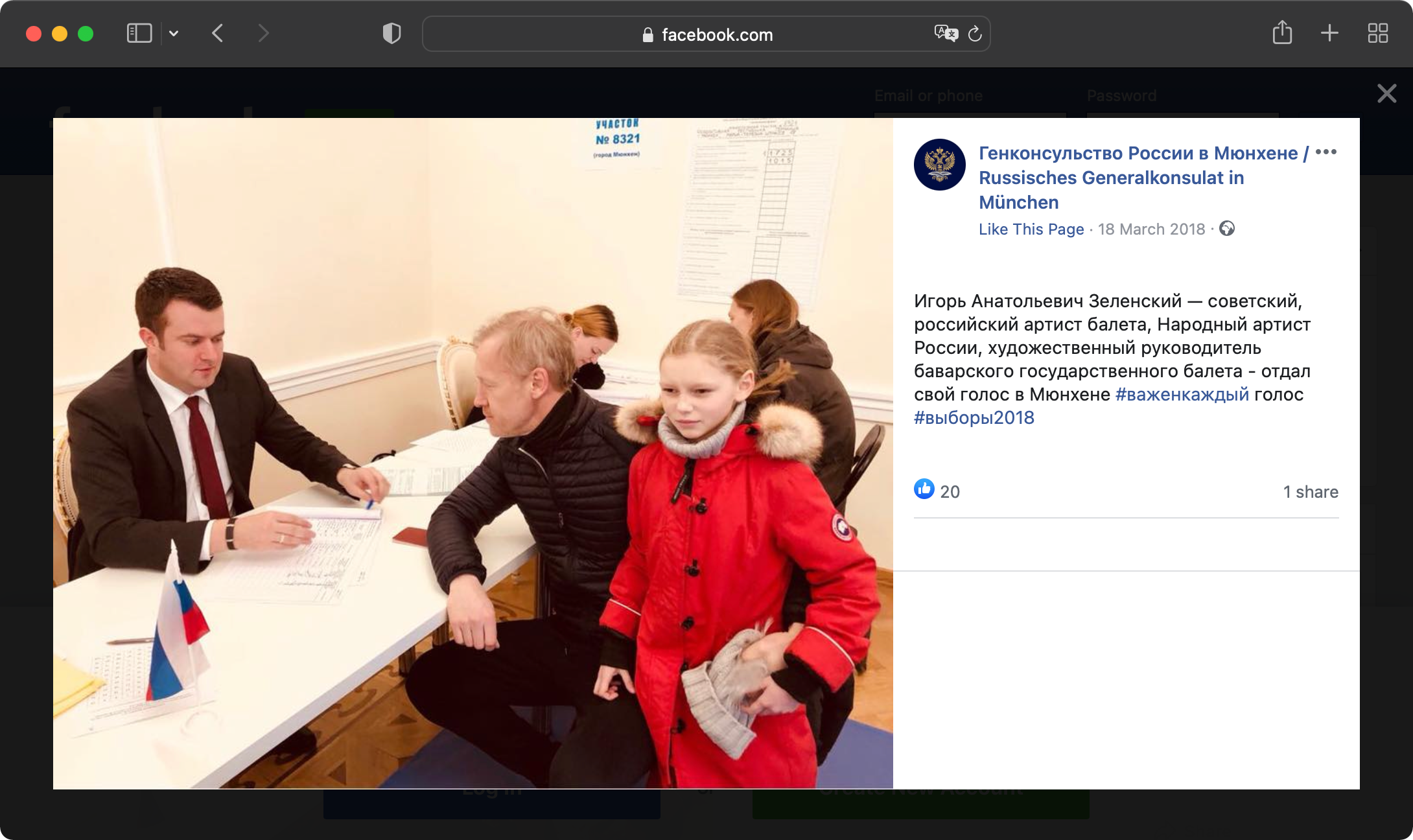 важенкаждый — таким хештегом генконсульство России в Мюнхене сопроводило фотографию Игоря Зеленского, пришедшего на избирательный участок в марте 2018 года. Тогда выборы президента РФ перенесли на неделю, совместив их с двумя региональными праздниками — днями «воссоединения» Севастополя и Крыма с Россией. Путин получил на мюнхенском участке, где голосовал Зеленский, точно такой же результат, что и по всей России: немного недотянул до 77% голосов. На предыдущих выборах, в 2012-м, Зеленский был доверенным лицом Путина.