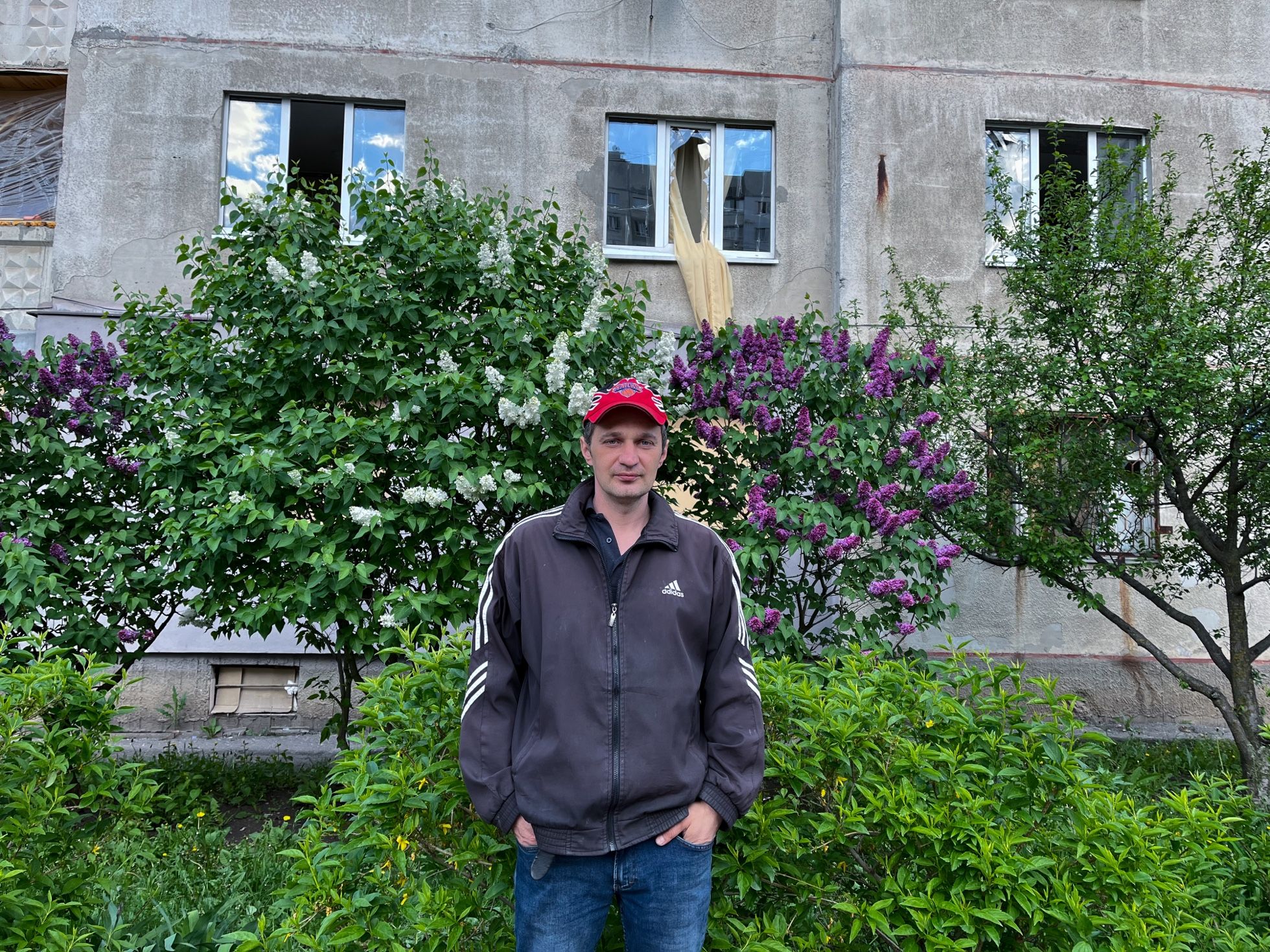 «Многие из Харькова выехали, конечно, и сейчас возвращаются. Но я не уезжал. До войны я был электриком, теперь вот привожу город в порядок, — рассказывает он. — Я не уехал, потому что я патриот. Тут работы сейчас много. Бомба прилетела в соседнее здание и застряла на третьем этаже. Мы с ребятами сразу стали разбирать завалы. Ездил недавно в свою деревню, видел трупы российских солдат. Почти разложились уже».