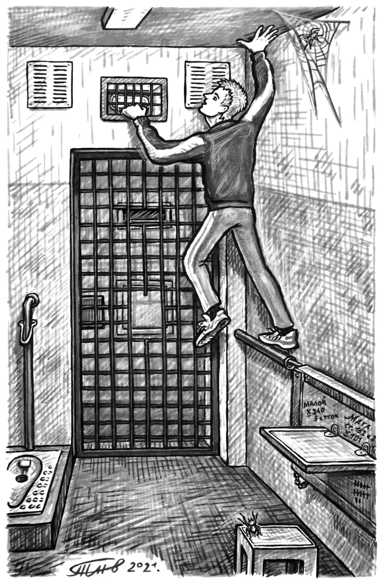 Поводом стала, казалось бы, невинная выходка. Когда мы вчетвером возвращались с прогулки по продолу [1] нашего спецблока, я прошёл вперёд и заглянул в глазок другой — не нашей — камеры, где сидел мой знакомый. Поскольку это был спецблок, то прямоугольный глазок, напоминавший окошко на маске сварщика, защищало не только толстое стекло, но и стальной лист со стороны камеры, в котором было просверлено множество маленьких отверстий, а потому без привычки разглядеть через него что-либо было весьма затруднительно. Пару раз я крикнул что-то приветственное, чтобы привлечь внимание арестантов в камере, но, кажется, тщетно. В итоге я развернулся и пошёл уже к своей камере. Молодой мусорок стоял в полной растерянности.