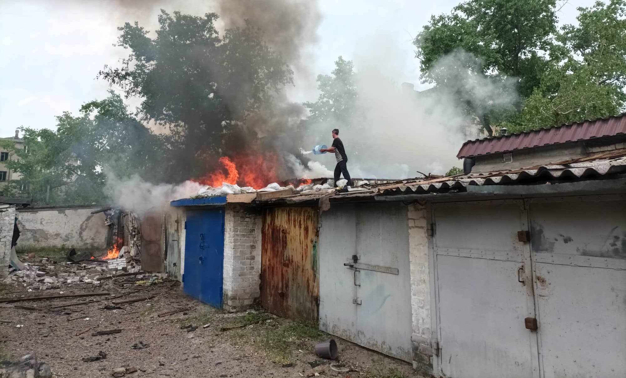 Житель Северодонецка тушит пожар. Фото: Ариф Багиров