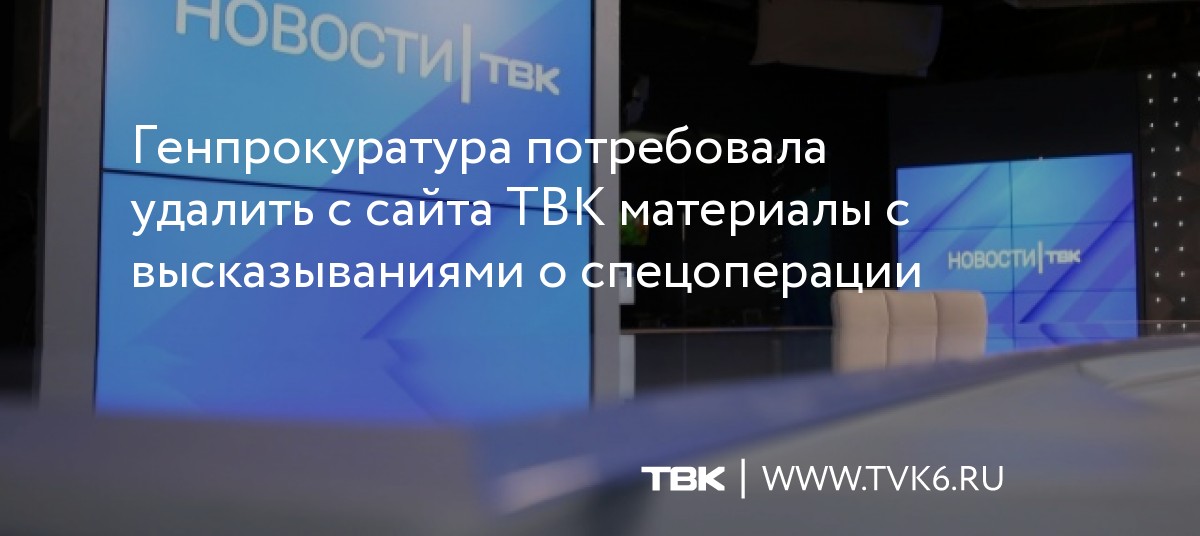 Генпрокуратура потребовала удалить с сайта ТВК материалы с высказываниями о спецоперации