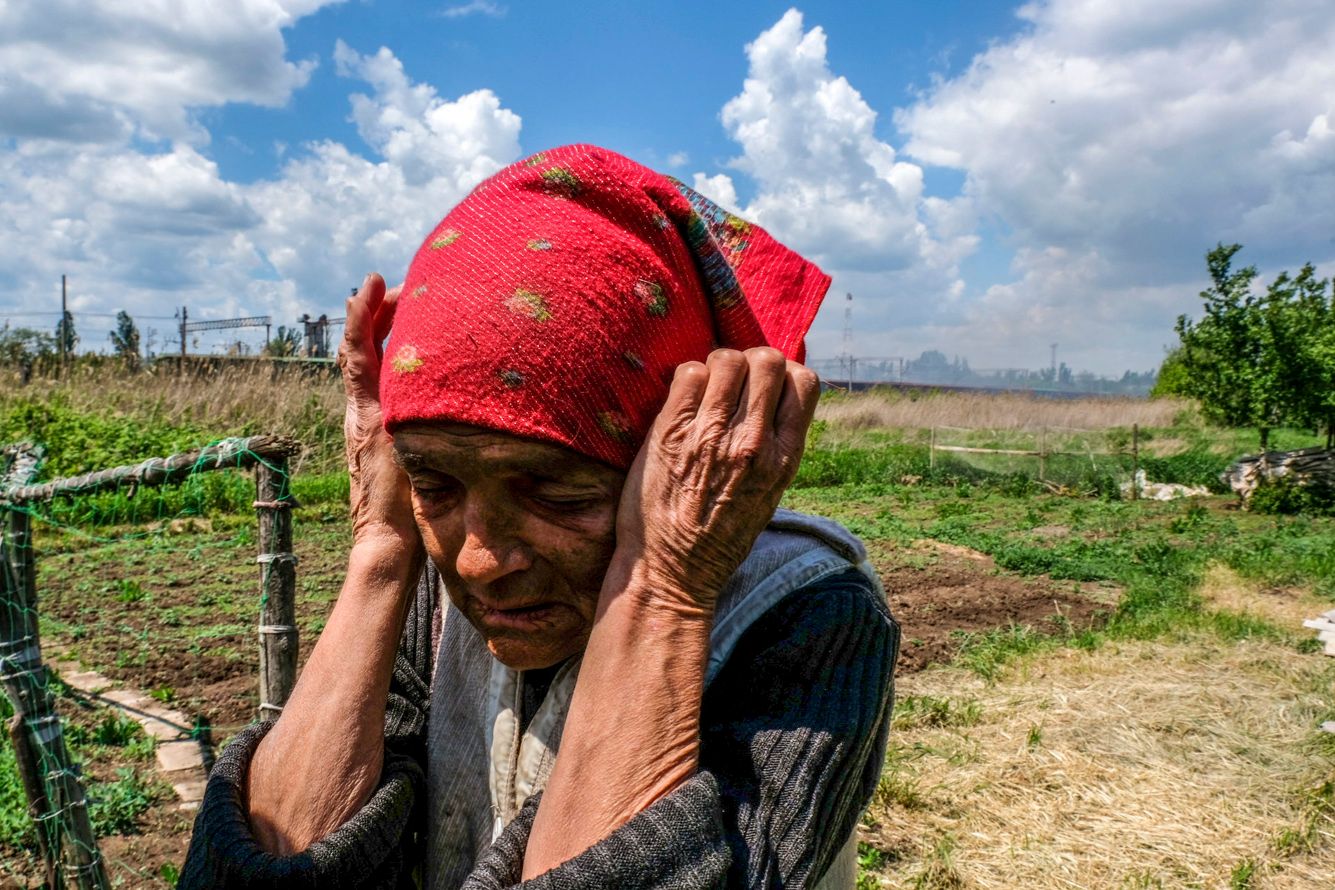 Andriy Andriyenko / AP / Scanpix / LETA Николай Кононенко, 67-летний житель села Маяки Донецкой области, у входа в бомбоубежище